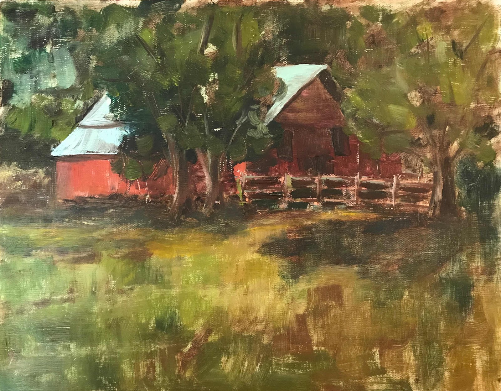 It seems that a painting, like a poem, essay, or other writing piece, is never "finished." I love these - especially the one with the wheelbarrow.