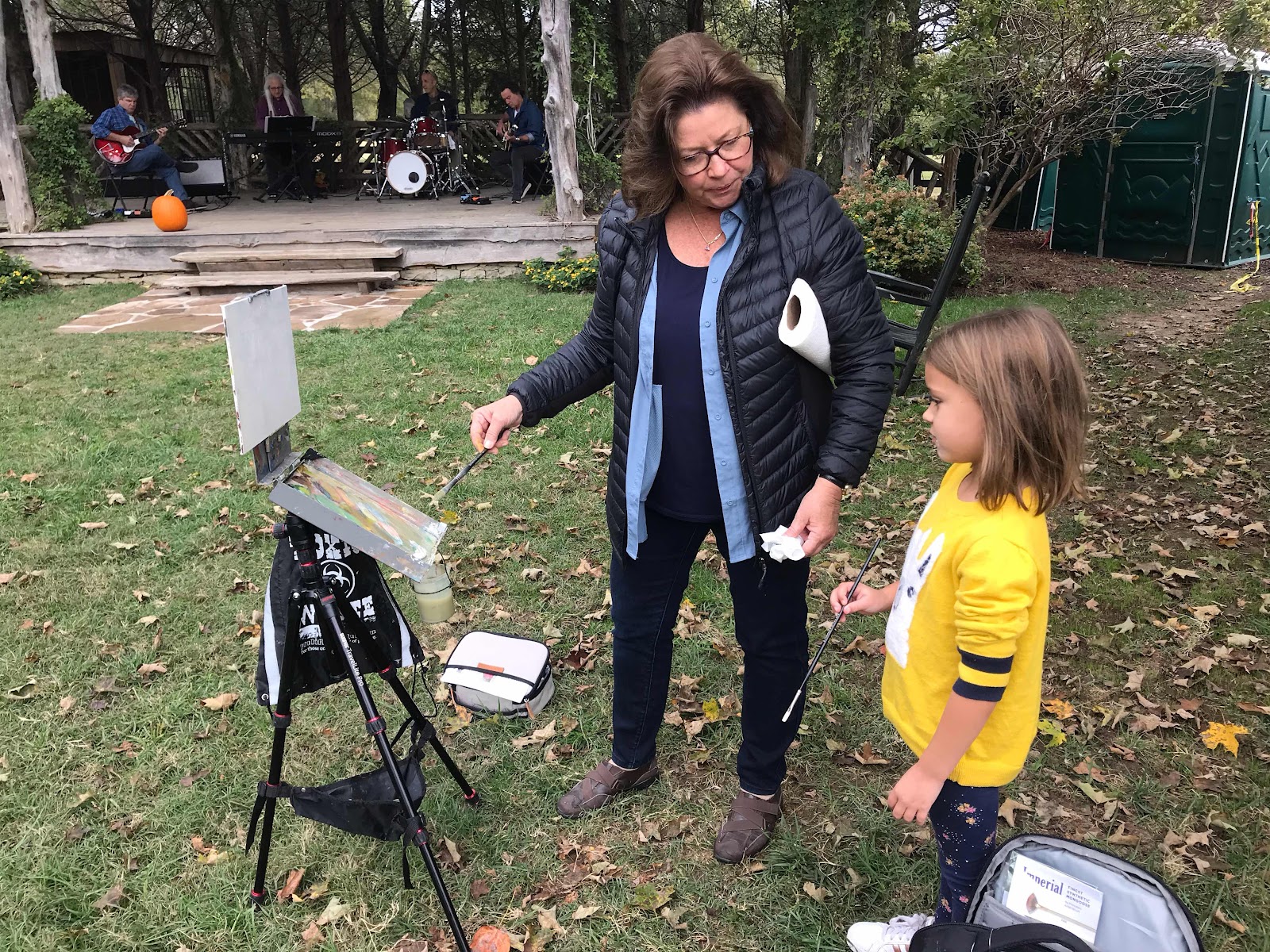 I loved seeing the attention Bradley and Pam gathered. Leiper's Fork was full of residents, visitors and artists - and many of them came by to watch Pam and Bradley work together. Many took photos. Yes, Bradley was as cute as can be. However, she was also serious. She was 100% into the creative endeavor of painting that pumpkin. She listened attentively as Pam gave her instruction, and she followed it carefully.